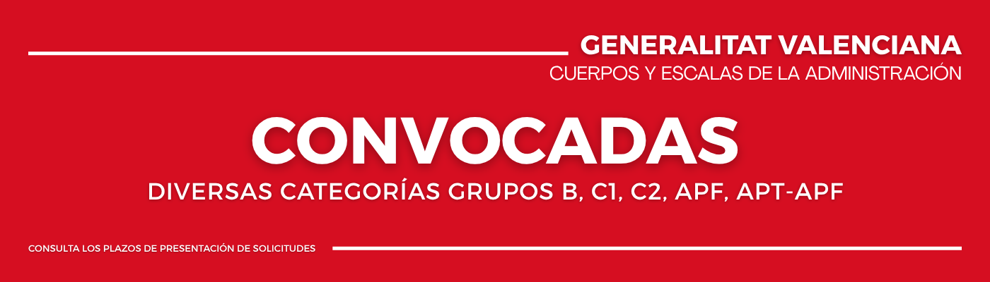 Consulta las categorías para las que tenemos opciones de preparación para las oposiciones de la Generalitat Valenciana, actualizados y adaptados al programa de tu oposición